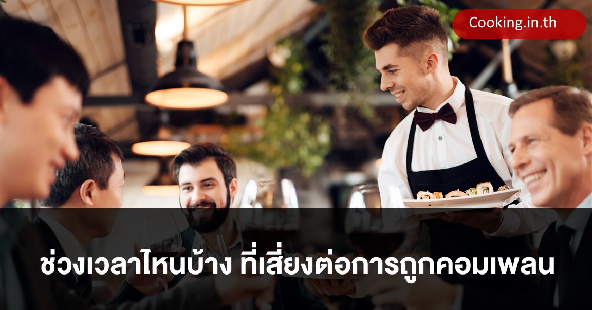 การบริการในร้านอาหาร ถือเป็นหนึ่งในขั้นตอนที่มีโอกาสเสี่ยง ถูกคอมเพลน ได้มากที่สุด เพราะเป็นช่วงเวลาที่ลูกค้าจะได้มีโอกาสพบปะ พูดคุย กับพนักงาน ซึ่งเมื่อ “คน” กับ “คน” มาเจอกัน นั่นหมายความว่า โอกาสในการสร้างความขัดแย้งและไม่พอใจกันก็จะเกิดขึ้นได้ทุกเมื่อ ดังนั้น จึงเป็นเรื่องสำคัญที่ผู้ประกอบการต้องพิถีพิถันและกำชับพนักงานให้ดีว่าจะต้องบริการอย่างเต็มที่ ดีที่สุด ให้ได้ตามมาตรฐานของร้าน ทั้งนี้ ในกระบวนการตั้งแต่ลูกค้าเข้าร้านมาและออกจากร้าน มี 4 ช่วงเวลาสำคัญด้วยกันในการบริการ ที่เราจำเป็นต้องใส่ใจเป็นพิเศษ เพราะเป็นช่วงเวลาที่มักเกิดเหตุการณ์ ถูกคอมเพลน ขึ้นได้ง่ายและบ่อยที่สุด โดย 4 ช่วงเวลาสำคัญนั้น ได้แก่